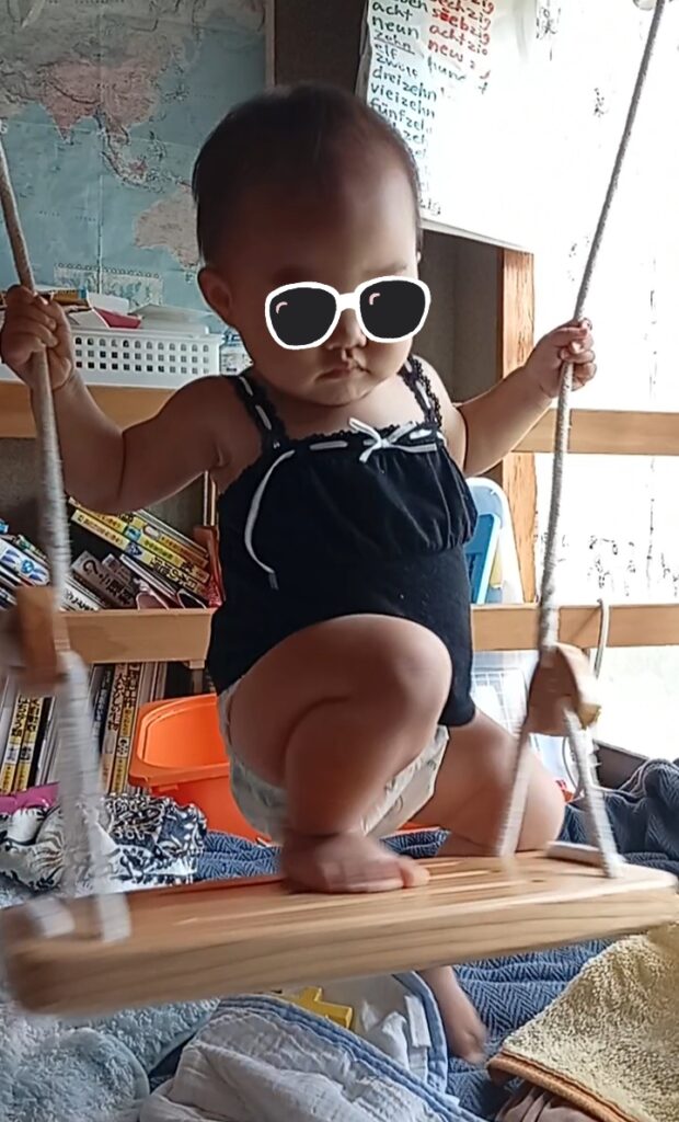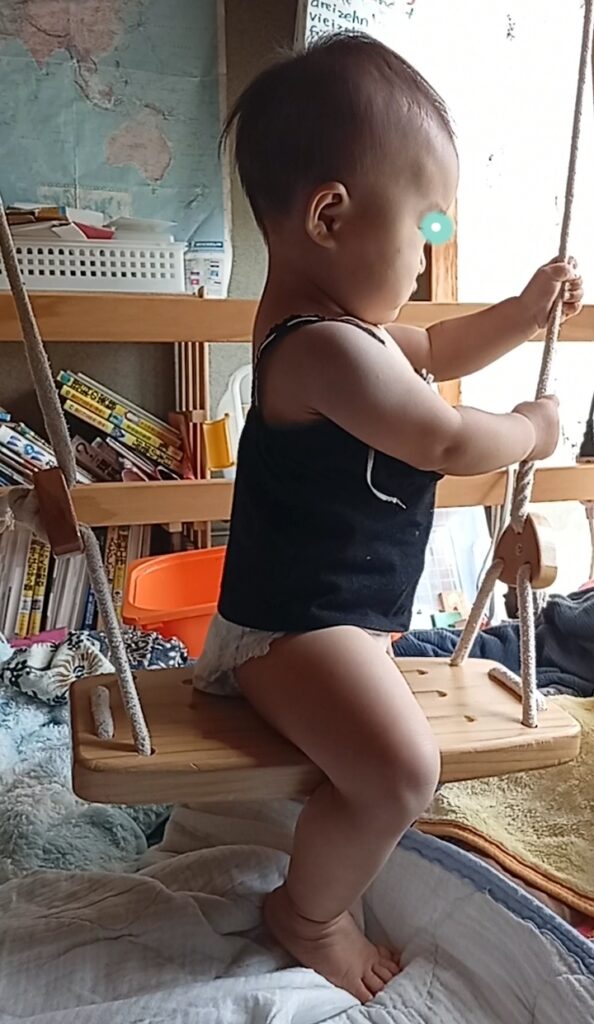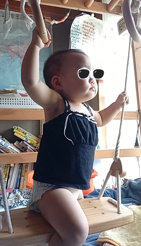 吊り輪にぶら下がって ぶらぶらするのが楽しそうです。