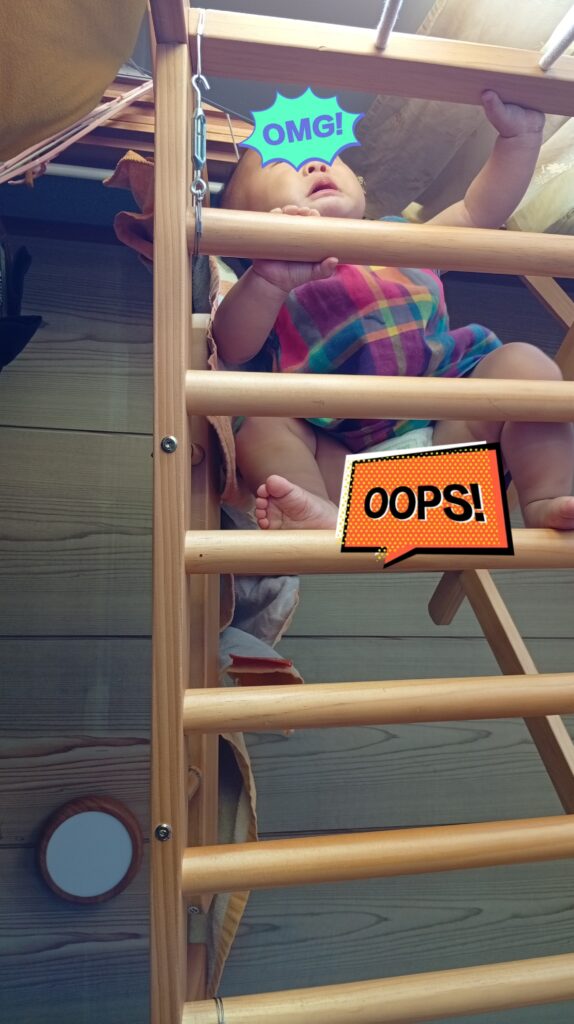 滑り台を這い上がって上の段に登るのが楽しいみたいです。