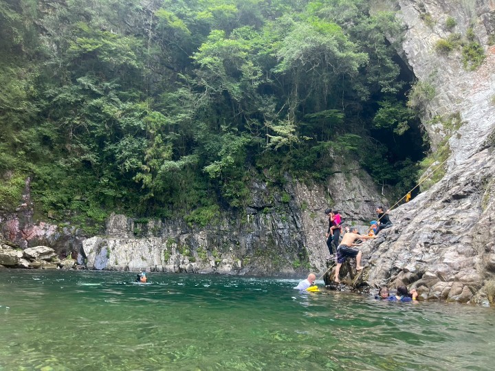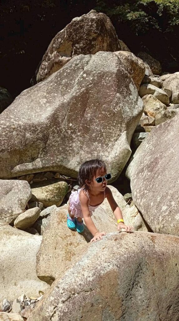 「水(川へ) ジャンプった。」