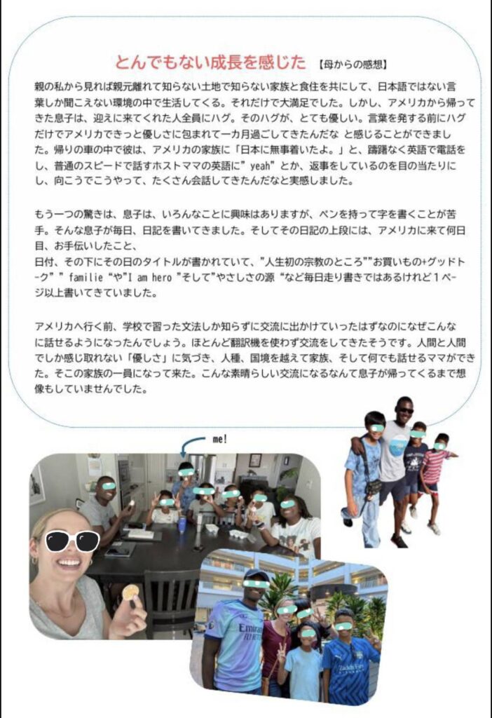その1ヵ月のアメリカ交流に参加した中学1年生の手記がこころに留まったので