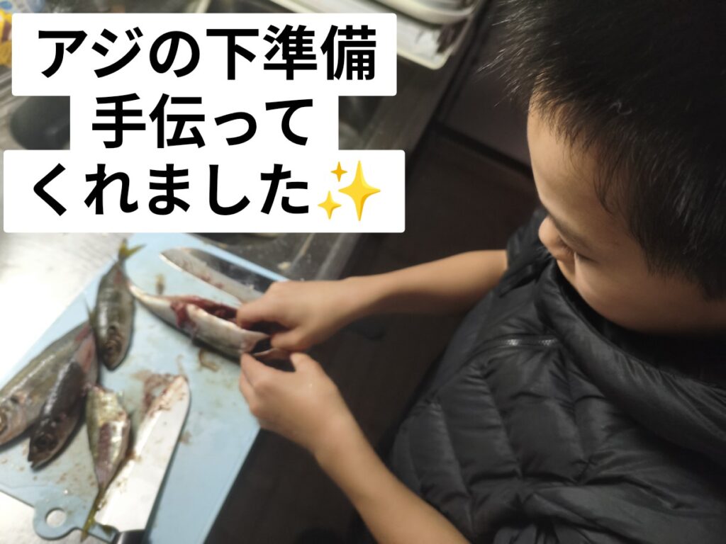 今日も魚捌くのを手伝ってくれました。
