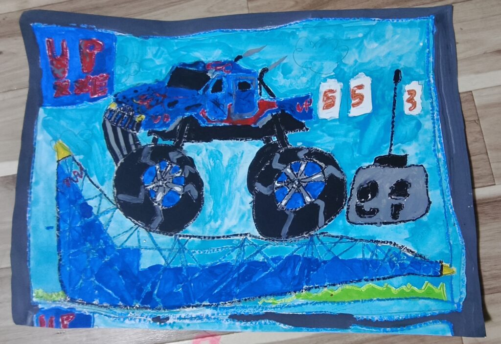 タイヤの上にのってる車体の書き方がとても面白いです。