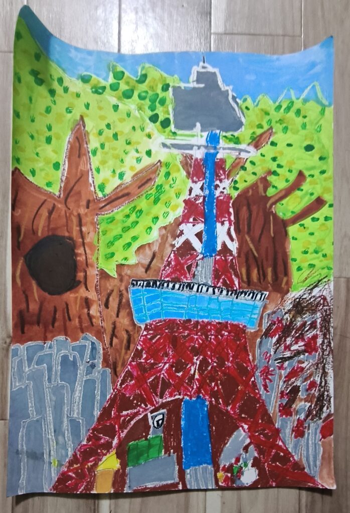 こんなにおおきな画用紙のほとんどをクレヨンで塗った