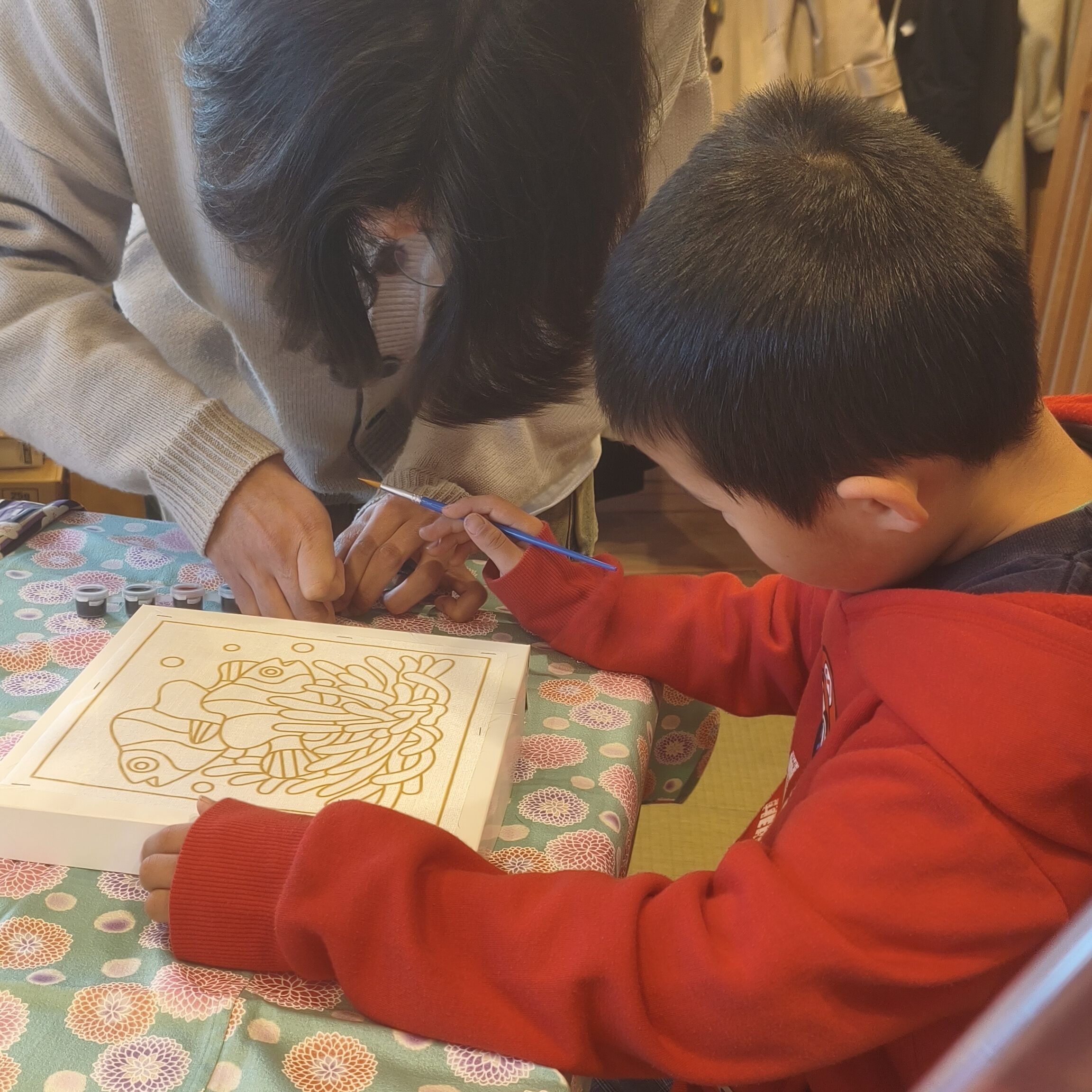 このママさんが色塗りをしながら